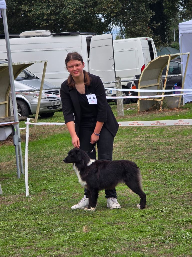 Féminine, très juvénile DCC, tête sèche Excellentes proportions/yeux Très bon port d'oreille Manque de menton Un peu courte Poitrine très légère Excellentes angulations avant/arrière Ossature légère Excellents pieds/aplombs Robe en mue Allures/Caractère à travailler