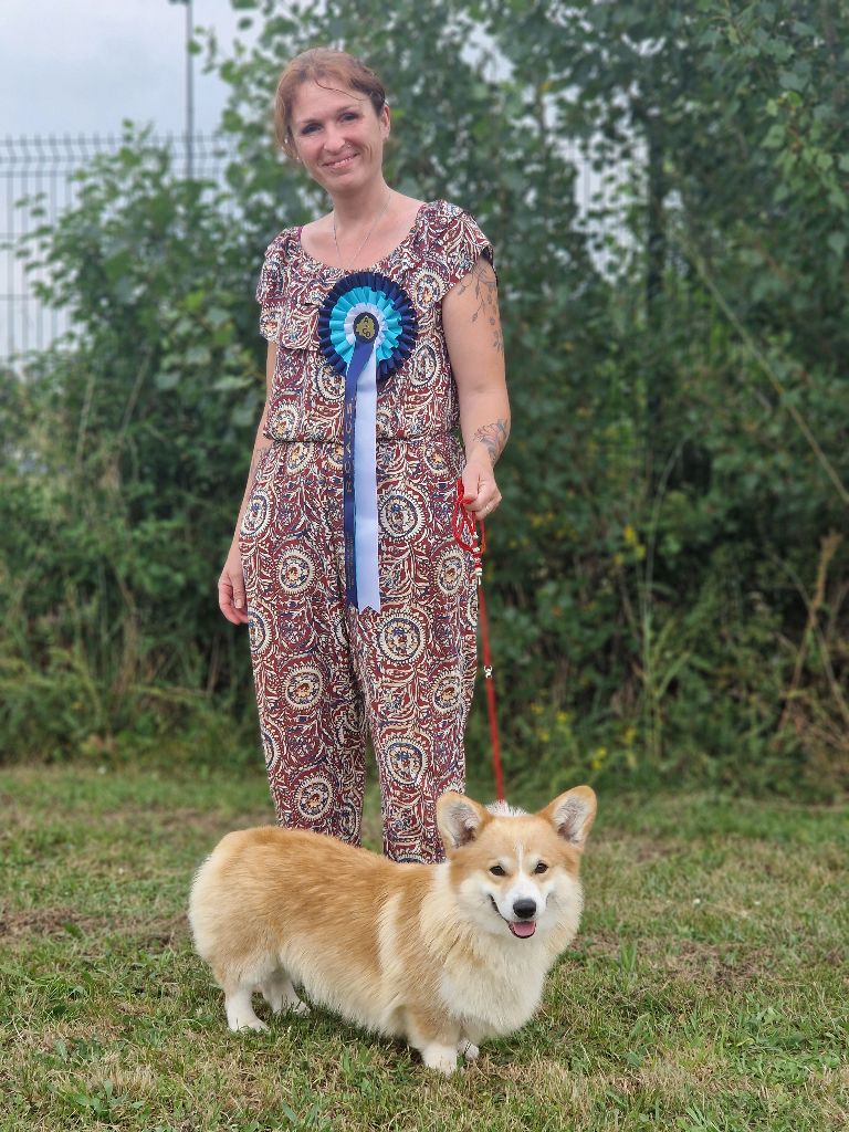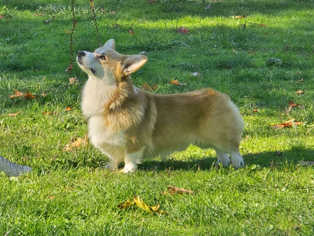 DCC. Joli mâle bien proportionné, Exc poitrine-sternum, bien positionné. Dos poourrait être + ferme, exc croupe, exc aplombs avant, légèrement ouvert à l'arrière. Encolure déployée. Tête bien proportionnée, exc crâne, stop et museau. Exc oeils bien placées, exc oreilles bien portées. Mouvement; bon les dos cède un peu